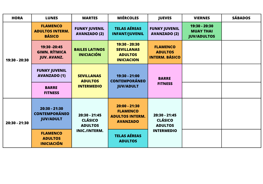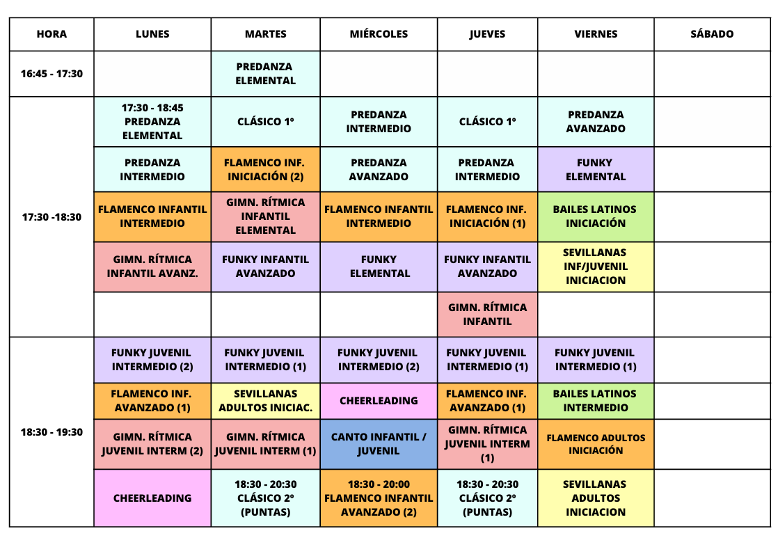 A continuación presentamos una amplia variedad de horarios y actividades, dirigido para todas las edades y niveles.